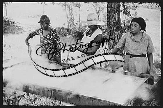 Title: Skimming the boiling cane juice to make sorghum syrup at cane mill near Carr, Orange County, North Carolina