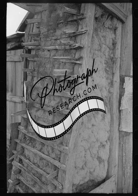 Title: Detail of construction of hundred-year-old house in which aged Cajun couple are living, near Crowley, Louisiana