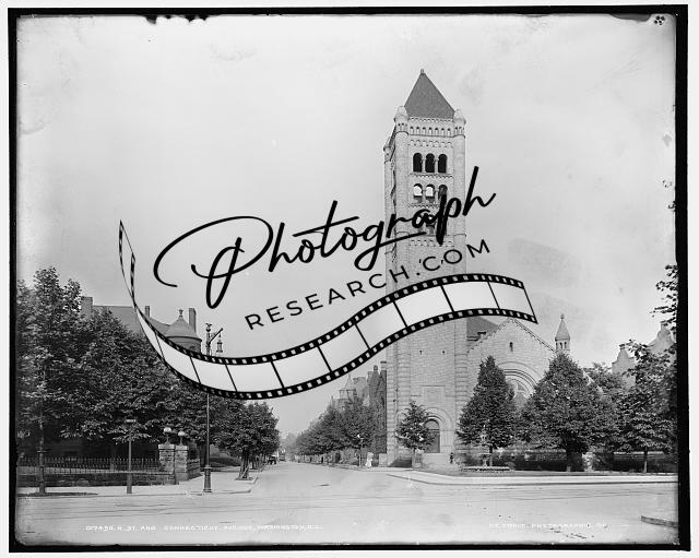 N Street,Connecticut Avenue,building,churches,bell tower,road,Washington DC,1900