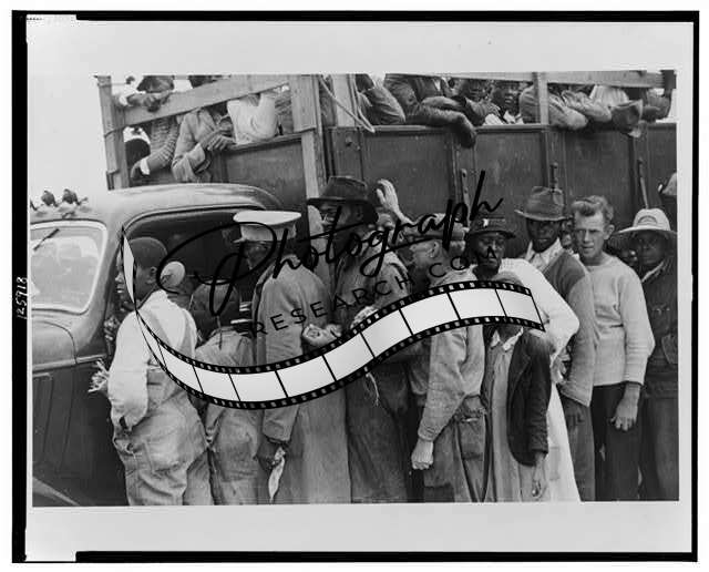 Title: Homestead (vicinity), Florida. Migrant vegetable pickers waiting after work for their pay