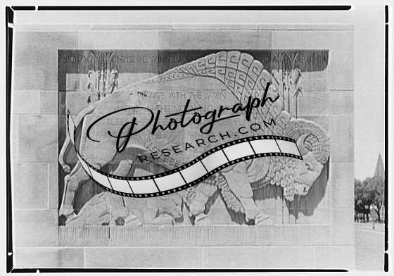 Title: Nebraska State Capitol, Lincoln, Nebraska. Up shot, east buffalo panel to tower