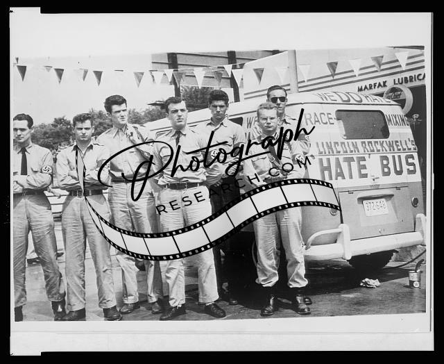 'American Nazi' party stand alongside their "hate bus" on arrival here, May 23rd