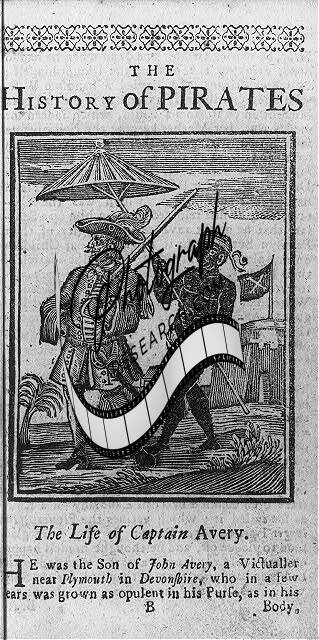 Captain Avery,negro holding parasol over him,1725,The History of Pirates