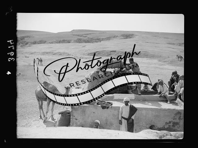 Drawing water by camel,cow power,Shafelah country,Middle East,American Colony,1