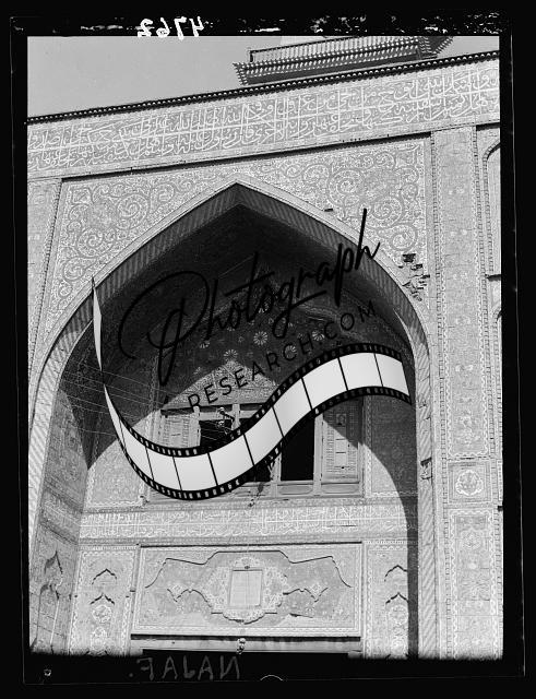 Title: Iraq. Nejaf. First sacred city of the Shiite Moslems [i.e., Muslims]. Mosque entrance. Lower section with beautiful blue tiling