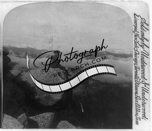 Above the Clouds,Eagle Peak,Yosemite Valley,California,CA,c1894,Man,Large Rock