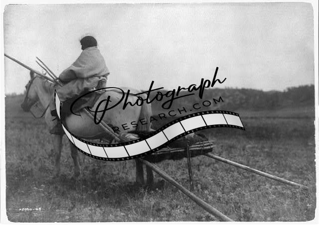 Atsina Indian, horse pulling travois,Native Americans,North,infants,travel,c1908