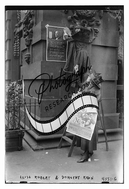 Elise Robert & Dorothy Kahn,two women hanging posters,Liberty Loans,Bain News