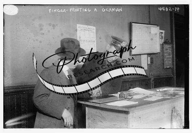 NYC police fingerprinting a German,New York City,Policeman,Bain News Service