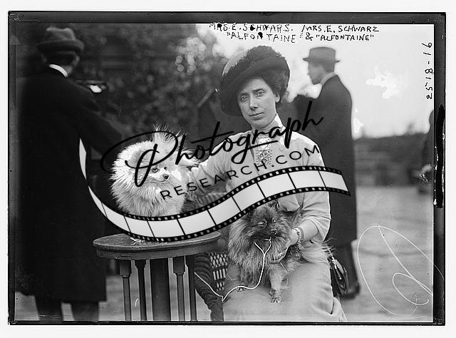Mrs. E. Schwarz & 'Alfontaine',woman posed with dogs,1910-1915