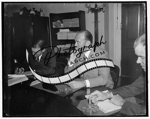 Title: New Assistant Att'y General. Washington, D.C., March 15. Sam E. Whitaker, Chattanooga, Tenn., is being congratulated by Attorney General Homer S. Cummings after the former had taken the oath of office as Assistant Attorney General in charge of claims. The ceremony took place today. Whitaker succeeds James W. Morris as head of the Claims Division. Whitaker is on the right