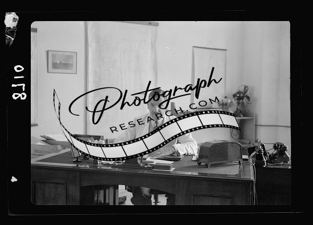 Title: New broadcasting studios on Queen Milisande's Way, Jerusalem. Group of Engineering Staff, on front steps of Palestine Broadcasting Service. bld'g [i.e., building], group in shade behind the house