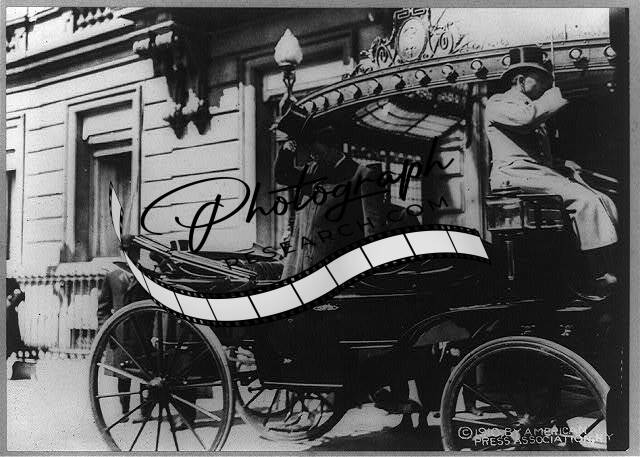 Theodore Roosevelt,carriage,saluting crowd,leaving,Hague,Des Indias Hotel,c1910