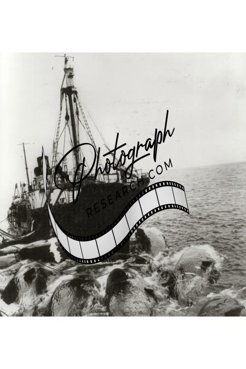 The Far-eastern whalers,whale-boat carrying whales to floating base,Sept. 1960