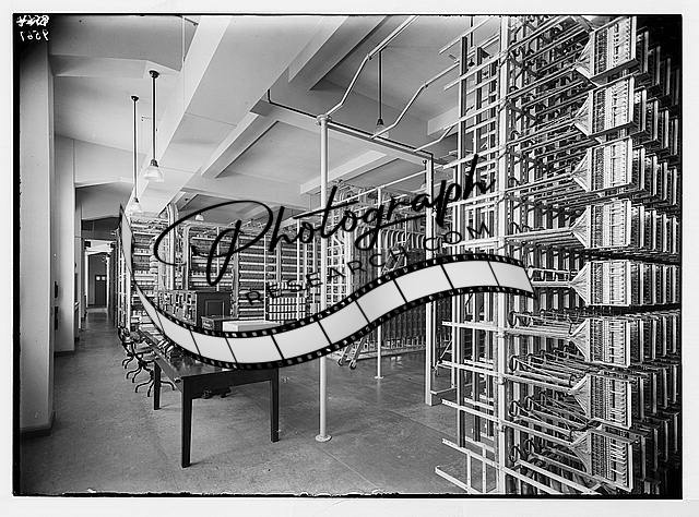 Title: New general post office bldg. [i.e., building] in Jerusalem opened June 17, 1938 by H.E. [i.e., His Excellency] New general post office. Trunk exchange & supervisors' desk