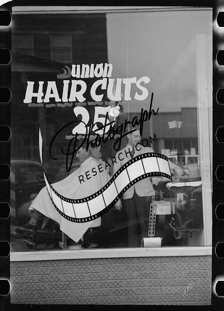 Union barbershop,Herrin,Illinois,IL,Arthur Rothstein,Farm Security Admin,FSA,1