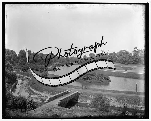 Scene,Rockefeller Park,bridge,river,Cleveland,Ohio,OH,Detroit Publishing Co,1900