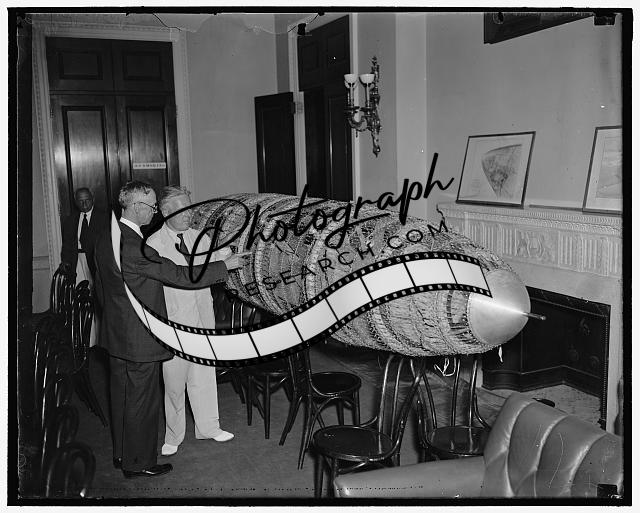Title: New radio meteorograph developed for the U.S. Navy. Washington, D.C., June 9. The National Bureau of Standards has recently developed for the U.S. Navy Meteorological Service a new radio meteorograph. The new instrument (shown in the picture) is sent up on a 5-Foot balloon and is expected to replace the use of airplanes in upper-air meteorological surroundings. E.G. Lapham, Associate Physicist of the bureau, is shown assembling the new meteorograph in preperation for an ascent. The device transmits audio notes which are a function of temperature and humidity. These notes are interrupted at approximately each 10-millibar increment in pressure, thus identifying each temperature and humidity indication with its respective increment of altitude, 6/9/37