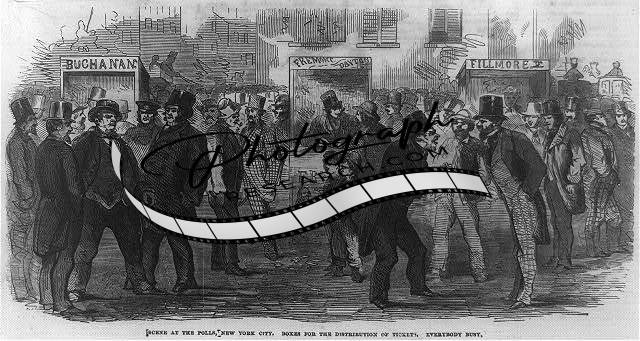 [[Scene at the polls, New York City. Boxes for the distribution of tickets. Every