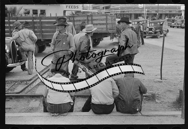 Day laborers waiting along tracks for possible employment,Raymondville,Texas,2