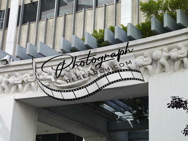 Title: Sculpture 'The New World' on the exterior of the Edward R. Roybal Federal Building and Courthouse, Los Angeles, California