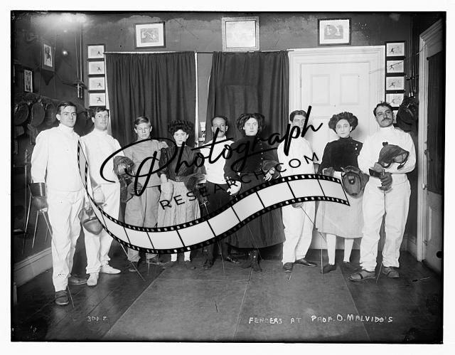 Fencers at Professor O. Malvido's,group of men and women