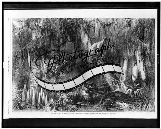 Cyprus swamp,Opelousas Railroad, LA, A.R. Waud 1866