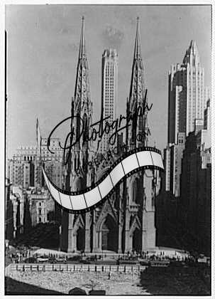 New York city views. Axis of St. Patrick's Cathedral,with tower between spires