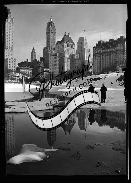 New York city views. Plaza buildings,reflected in open lake,Samuel Gottscho,1933 1