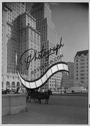 New York city views. Cab,plaza,at 59th Street,Cityscape,Samuel Gottscho,NYC
