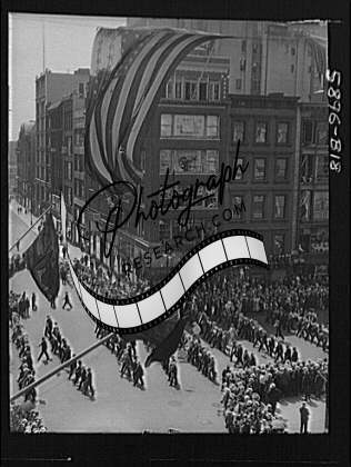 New York City views,parade,buildings,streets,crowds,flags,Arnold Genthe,1918