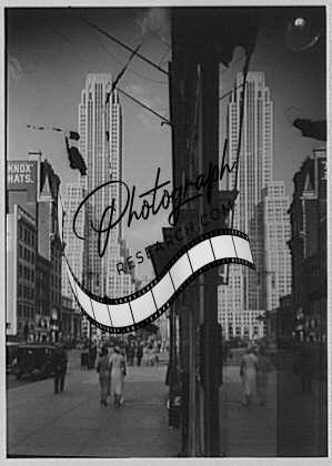 New York city views. Salmon Tower,reflected in show window,Samuel Gottscho,1932