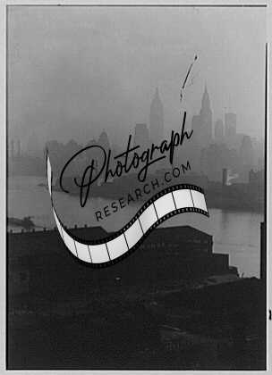 New York city views. Midtown through mist,from Queensboro Bridge,NYC,1932