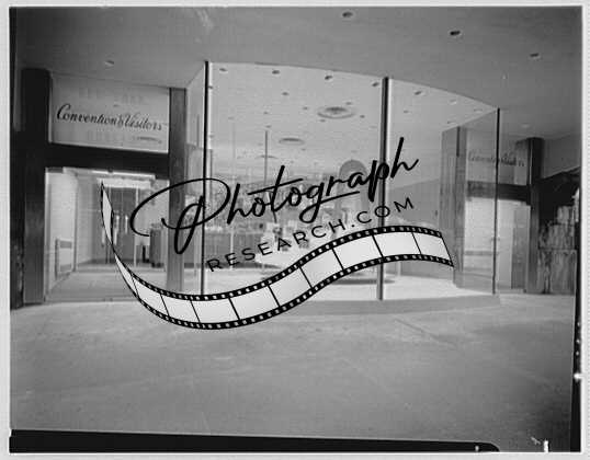 Title: New York Convention and Visitors Bureau, opposite Grand Central Station. Close-up to window from left