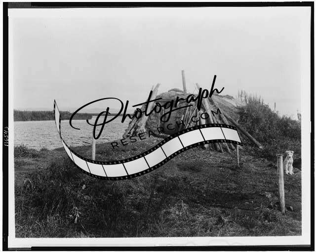 On the Selawik River,c1929,Edward S. Curtis,Photographer,Hut,Dog chained to post