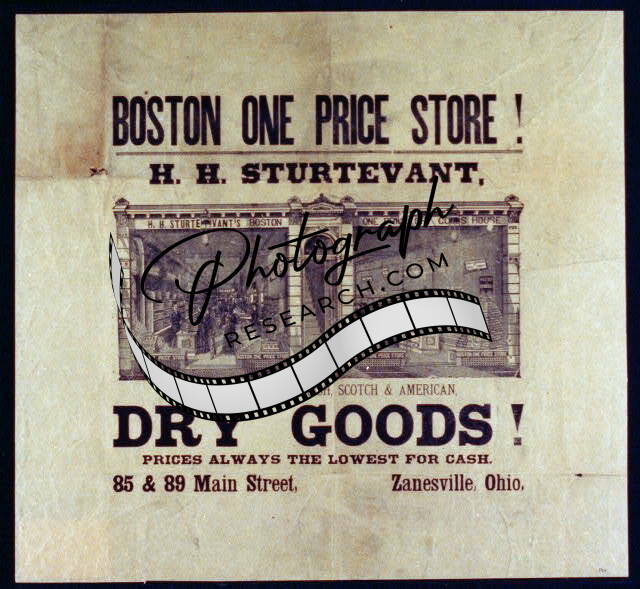 Boston One Price Store,H.H. Sturtevant,Dry Goods!,Zanesville,Ohio,OH,store,1880s