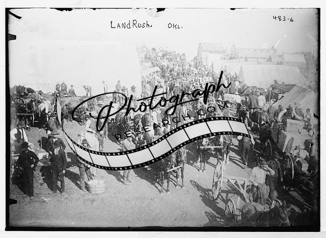 Land rush,Oklahoma,OK,Horse-drawn carts,crowd of people