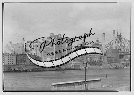 New York skyline from Welfare Island. Campanile to Tudor City,NY,Gottscho