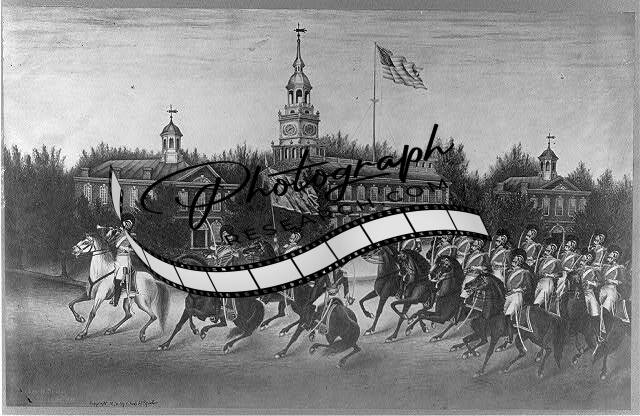 Militia Unit,Horseback,Independence Hall,c1875,US Flag