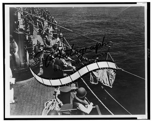 United States Seaman,wounded in battle,transferred at sea,warship,World War,WWII