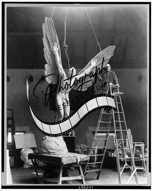 Gutzon Borglum,sculptor,ladder,alongside sculpture,Statue,Aviator,artist,c1919