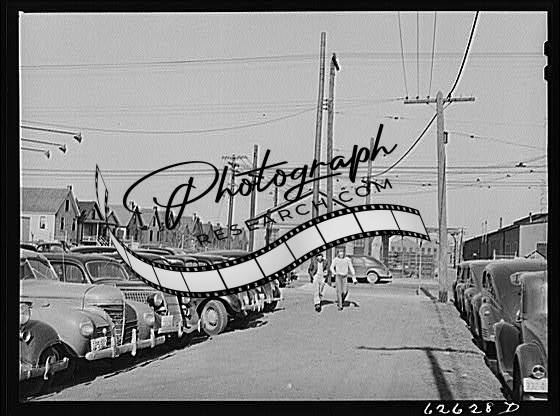 Title: Parked cars belonging to shipyard employees. Newport News, Virginia