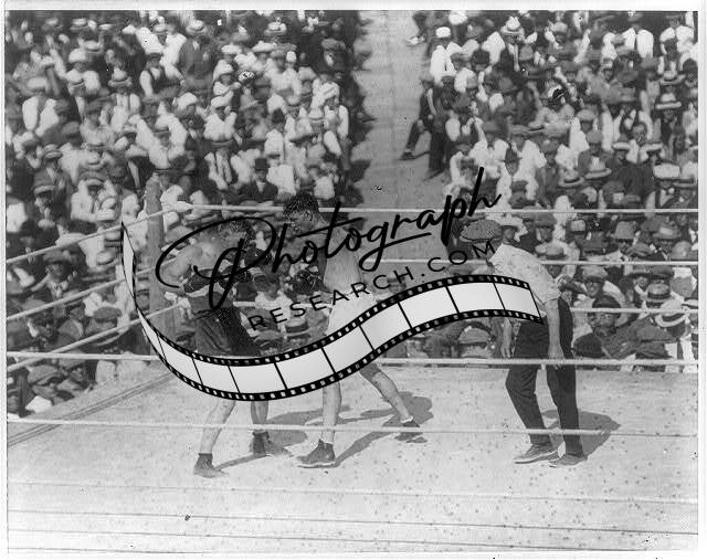 Jack Dempsey-Gibbons boxing match; Dempsey landing left,c1923