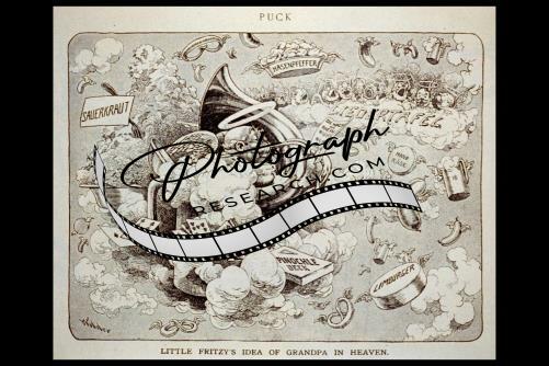 Little Fritzy's idea of Grandpa in Heaven,c1913,German,mug of beer,tuba,food