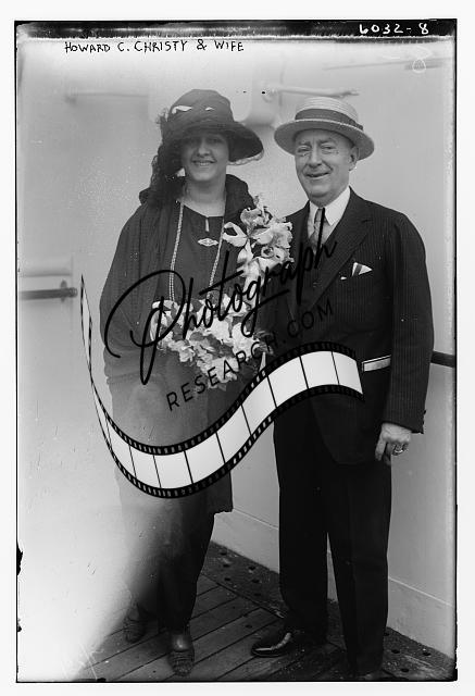Howard C. Christy,wife,flowers,ship passengers,boats,decks,suits,hats,dresses