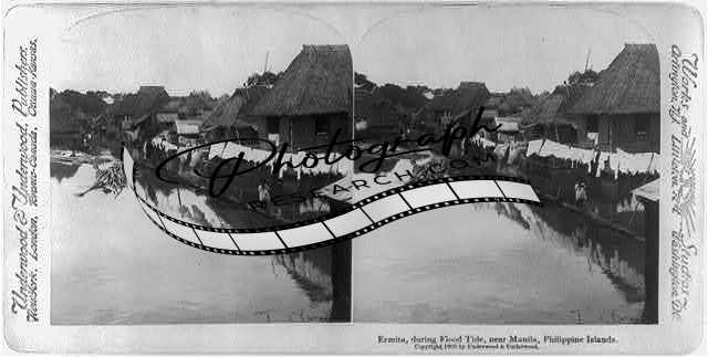 Ermita,during flood tide,near Manila,Philippine Islands,c1900,clotheslines