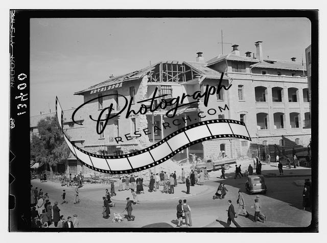 Damage to police headquarters,Jerusalem,Israel,Middle East,1945,Jewish Bomb