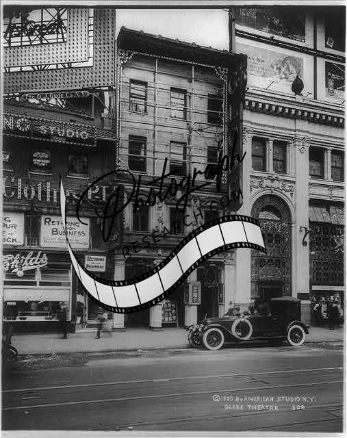 Globe Theatre,Theater,buildings,signs,automobiles,streets,New York City,NY,c1920