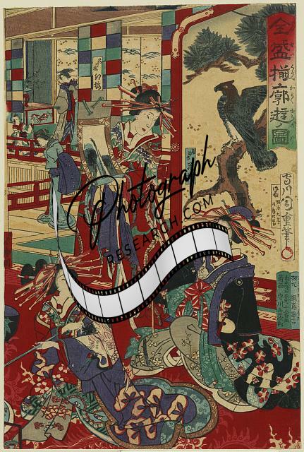 Zensei kurabe kakuyu no zu,Photo of Ukiyo-e,Competing Brothel Houses,Japan,1876