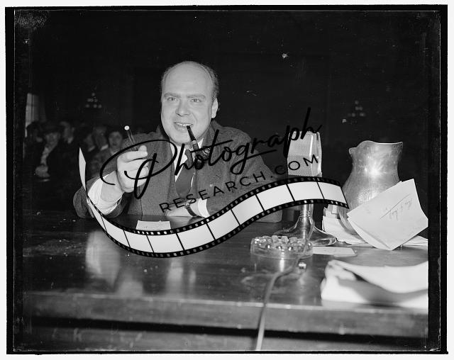 Title: NLRB Invesitgating Committee quizzes Edwin Smith?, NLRB Board member. Washington, D.C., Dec. 15. Edwin S. Smith, member of the National Labor Relations Board photographed as he testified before the Smith Committee investigating the NLRB